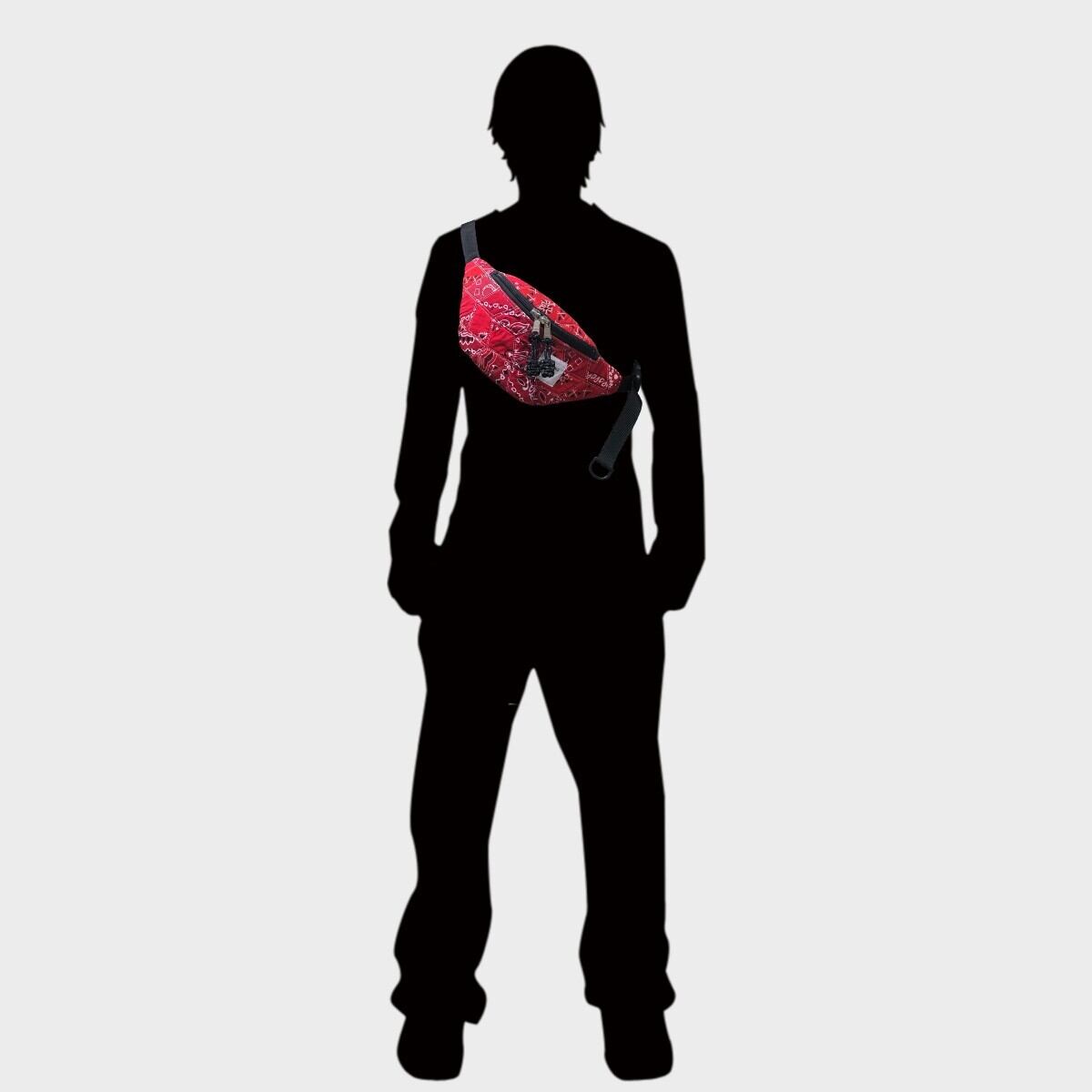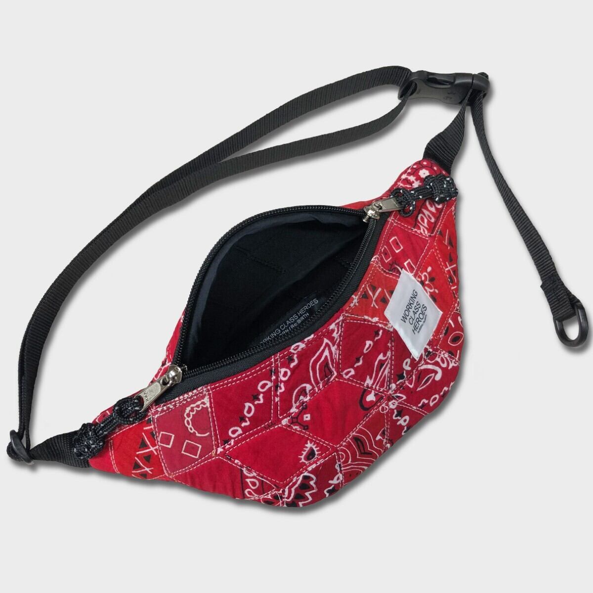 様々な年代のヴィンテージバンダナを菱形にカットしパッチワークしたウエストポーチ。