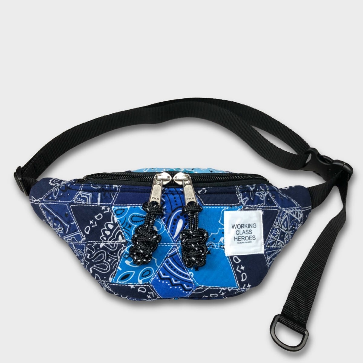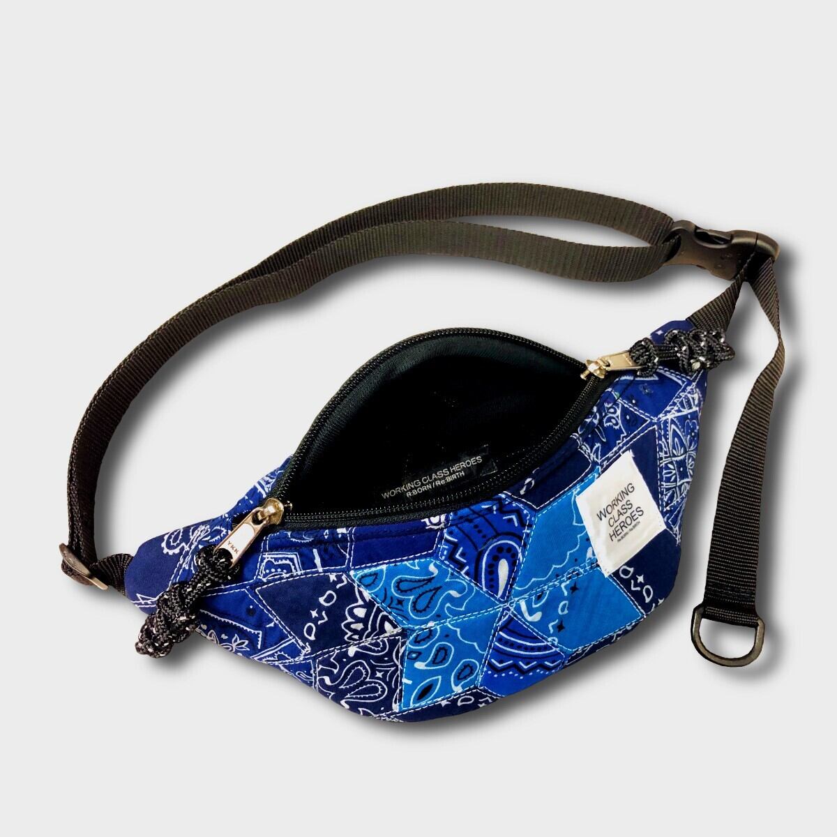 様々な年代のヴィンテージバンダナを菱形にカットしパッチワークしたウエストポーチ。