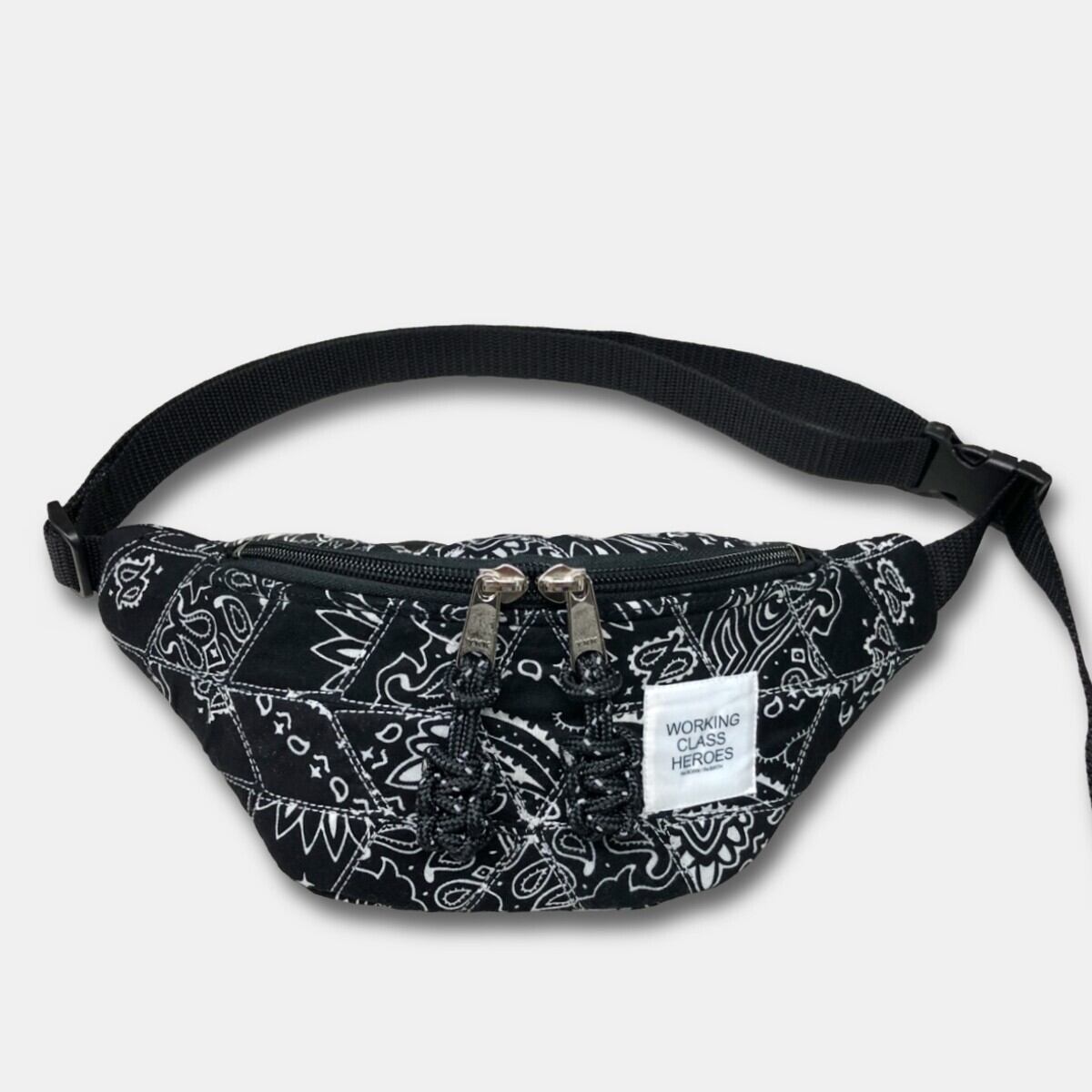 様々な年代のヴィンテージバンダナを菱形にカットしパッチワークしたウエストポーチ。
