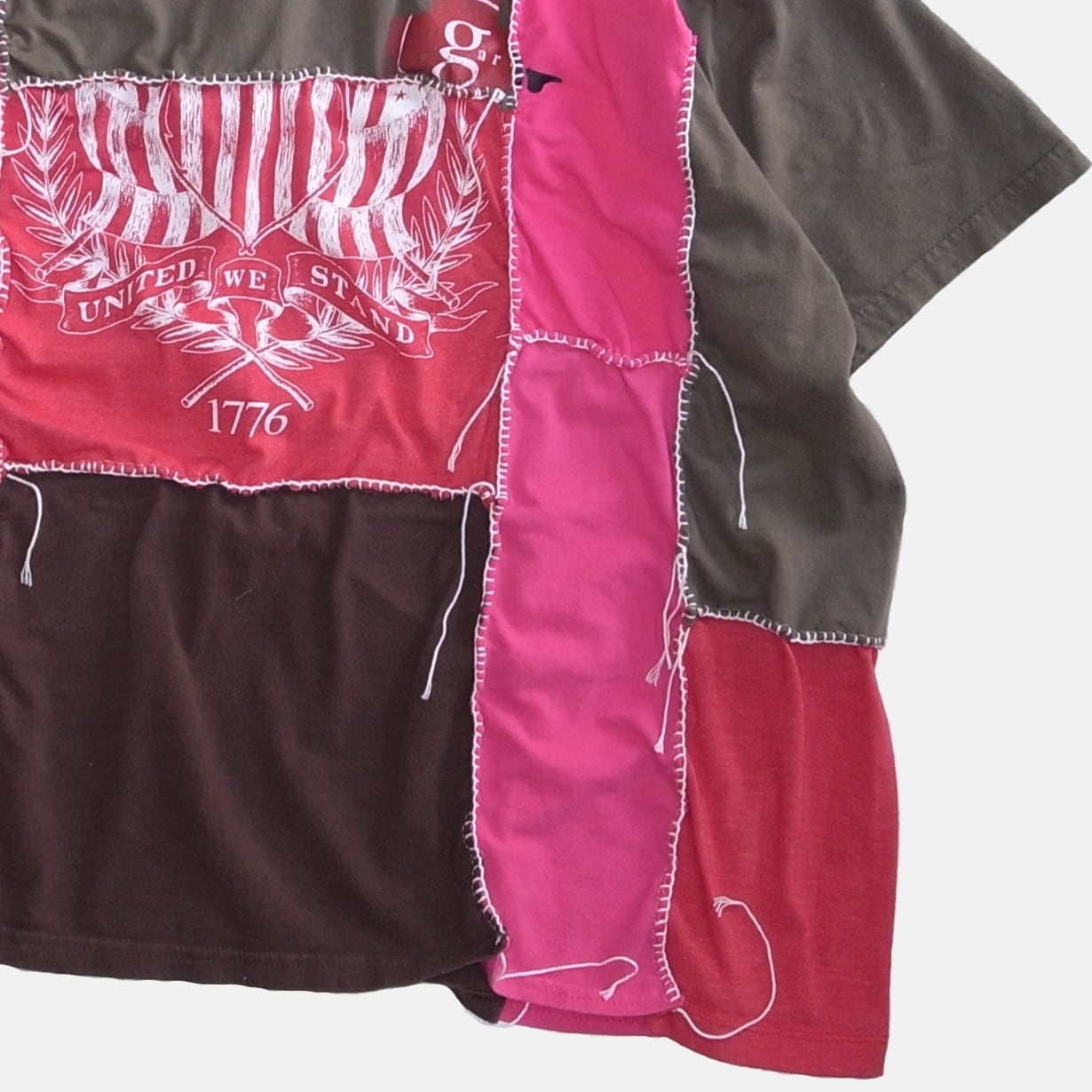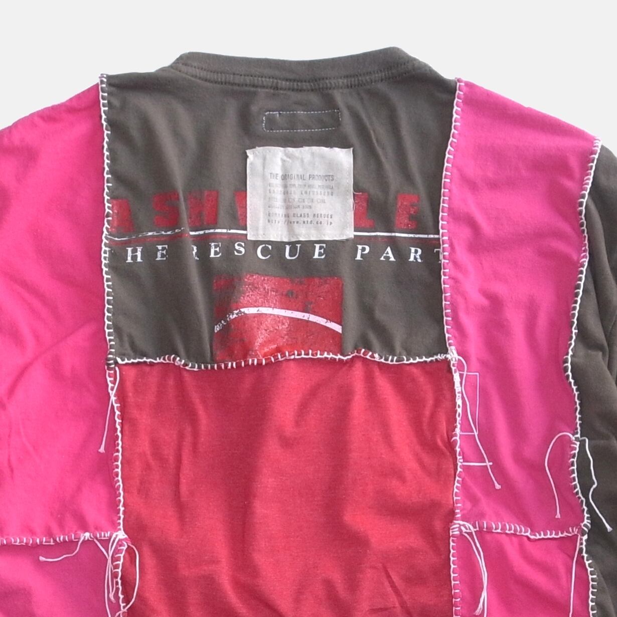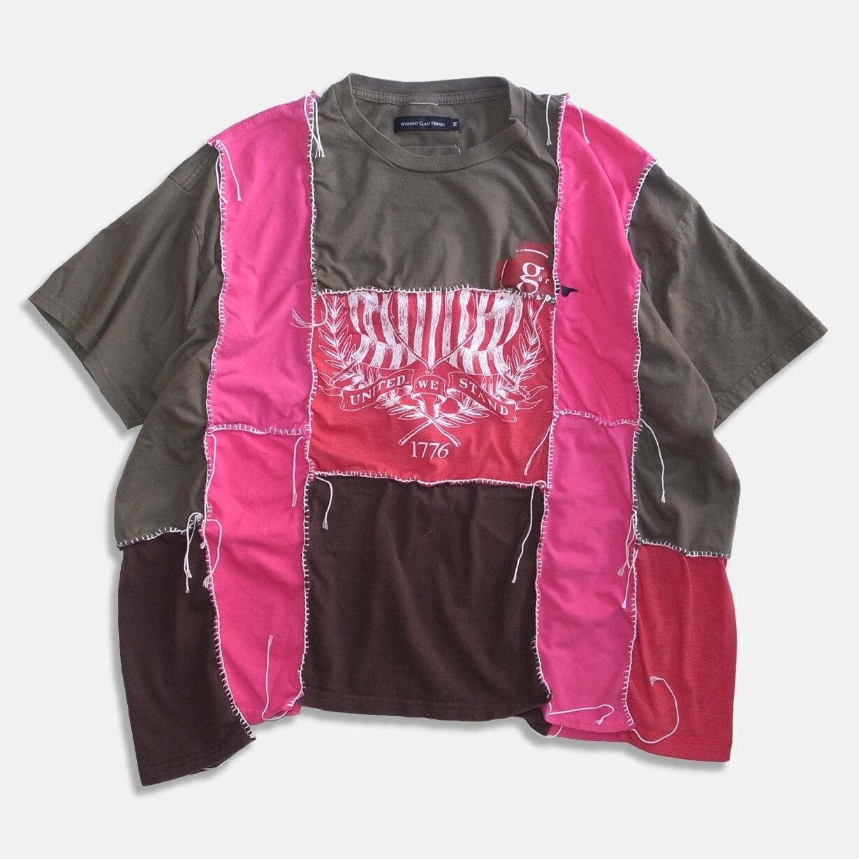 ユーズドのプリントTシャツを5枚解体し再構築したパッチワークTシャツ。
